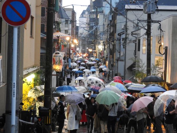 両日とも雨に見舞われましたが、夕刻からはじまる庭見世のときは、雨が小康状態になり、傘をさしながらも大勢の見物客で賑わいました。「人数揃い」も、午後には雨があがり、本番に先駆けてすばらしい演し物が披露されていました。