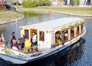 カップルや団体の観光客と一緒にゾロゾロと入国。すると目の前にチューリップ畑が絵のような美しさで広がり、街はしっかり春の装い。こちらも思わず気分が春めいて、ルンルンしながら運河を航行するクルーザーへ乗り込みました。ヾ(@⌒▽⌒@) Go Go !