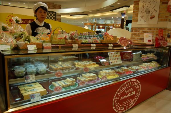 ところで、「小浜食糧株式会社」は、主に長崎の観光土産菓子を製造・販売している会社で、創業は、昭和7年(1932)の老舗です。「Bon Patty」(ボン・パティ)の名称で、本社のある雲仙市をはじめ長崎市や大村市など県内各所に店鋪展開しています。長崎を代表する銘菓「クルス」は、つとに有名で、長崎県外の方でも、「シスターのイラストのついたパッケージ」と言えば、「知ってる!」という方も多いことでしょう。他にも、ワッフルやクッキーなどの洋菓子から釜ぶたかぶせ(どら焼き)といった和菓子まで、多彩な品揃えで、お土産品から普段のおやつにと、多くの方々に親しまれています。