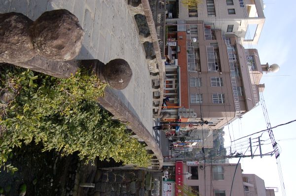 内町を囲むように外町がつくりはじめられたのは、慶長2年(1597)の頃。最初は、中島川に架かる賑橋から上流の眼鏡橋あたりまでの川沿い(西側)に、材木町、本紺屋(もとこうや)町、袋町、酒屋町といった町が並ぶようにできたそうです。これらの町名は、現在は残っていませんが、材木町は町建てに欠かせない材木が集められた場所といわれ、本紺屋町は、紺屋(染物屋のこと)が集まった町、袋町は足袋屋など小間物類(袋物)商があった町、酒屋町も酒屋があったことに由来するといわれています。いずれも商売に関連する町名だというのが注目すべきところ。当時の長崎には、町の発展を見込んで全国から商人たちが集まって来たいたのです。