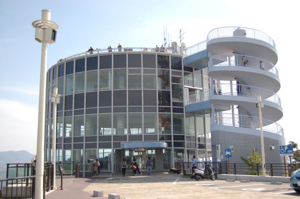 稲佐山に架かるロープウェイは、ふもと近くに設けられた「淵神社駅(ふちじんじゃえき)」から、山頂の「稲佐岳駅(いなさだけえき)」までの約1100メートルを5分でります。山頂の展望台は一部がこの春に整備され、屋上の展望広場には新しく椅子が設置されたり、夜には足下をLEDの光が照らすなど、以前より快適に景色を楽しめるようになっていました。