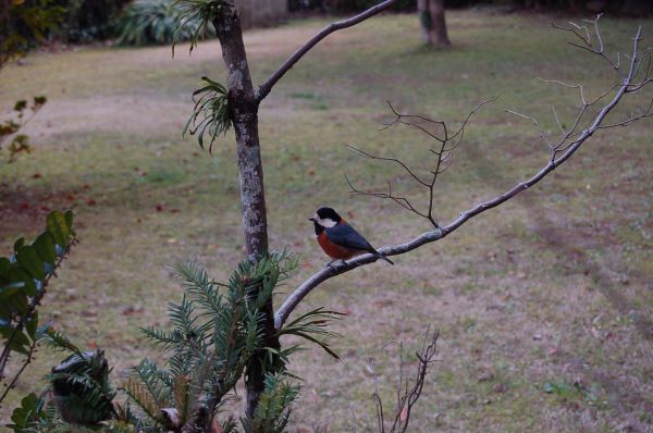 中島川がそそぐ長崎港界隈では、頭から背にかけて青くお腹がレンガ色をしたイソヒヨドリをよく見かけます。また、上流の森林の多い地域にいくと、「デデーポオポオ」と鳴く「キジバト」や「ツツピー、ツツピー」と鳴く「ヤマガラ」などとも気軽に出会えます。