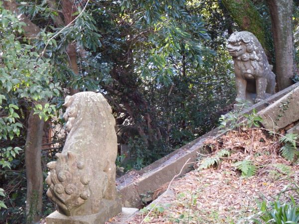 前々回、狛犬めぐりをしたとき、人知れず森林のなかに鎮座する狛犬がありました。そこは長崎公園の一角にある東照宮(家康廟)の古い参道で、現在は石段が崩れかけているため通行止めになっています。東照宮は江戸時代には、同場所にあった安禅寺に祀られていましたが、明治維新後、廃寺になりました。もとは由緒ある寺の狛犬だけあって、大きめで端正な姿をしています。調べてみると、1829年(文政12)に高島四郎兵衛茂紀(しげのり)が奉献したものだとわかりました。茂紀は、幕末期の西洋砲術家として名高い高島四郎太夫茂敦(しげよし)こと、秋帆(1798-1866)の父親です。