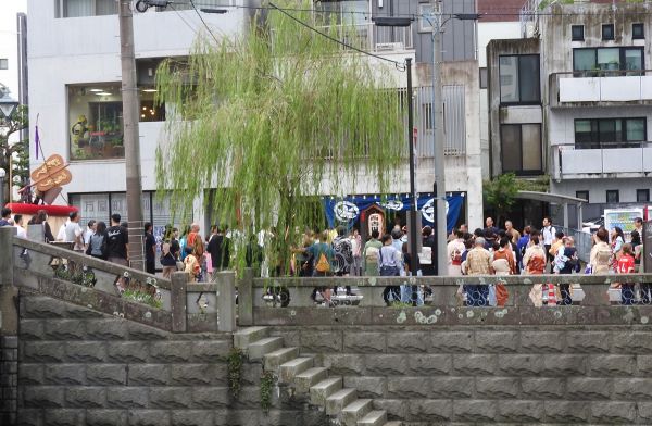 両日とも雨に見舞われましたが、夕刻からはじまる庭見世のときは、雨が小康状態になり、傘をさしながらも大勢の見物客で賑わいました。「人数揃い」も、午後には雨があがり、本番に先駆けてすばらしい演し物が披露されていました。