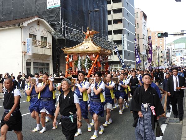 昨日は、「お下り」が行われ、諏訪神社からお旅所まで、諏訪・住吉・森崎の三基の御神輿の行列がまちを練り歩きました。沿道に詰めかけた大勢の人々の顔ぶれを見ると、高齢の方々がとても多い。いつだったか、地元の女性(当時85才)が、「私らが子どもの頃、くんちの日は、朝から小豆ご飯、お煮しめ、ざくろなますといったごちそうが出る。学校は午後から休みで、家に帰ると、新調した洋服を着せてもらって、まちに出るのさ。うれしかったね。いまでも、くんちがはじまると、その頃と同じようにワクワクする」と話していたのを思い出しました。