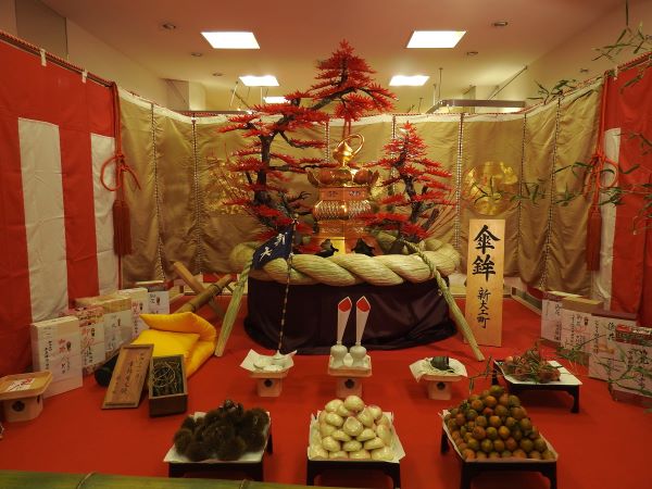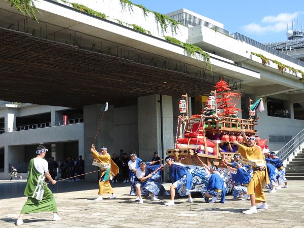 9月下旬まで、気温は連日30度を超えていましたが、10月に入るとさすがに過ごしやすくなってきました。とはいえ、30度に達する日もあり、残暑と秋のせめぎあいはまだ終わっていないようです。猛烈な暑さに見舞われたこの夏、長崎くんちの踊町(新橋町、諏訪町、新大工町、榎津町、西古川町、賑町)の方々の準備は本当にたいへんだったことでしょう。本番を間近に控えた10月3日には、使用する衣装や道具などを披露する「庭見世(にわみせ)」、続く4日には、踊町の演し物の仕上がりを町内の人に披露する「人数揃い(にぞろい)」が行われました。