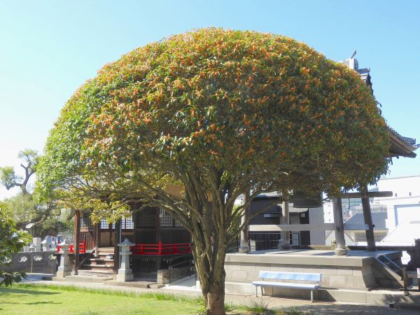 長崎のまちがキンモクセイの香りに包まれたのは11月初めのこと。例年なら10月のうちに開花するところですが、今年は残暑が厳しかったせいで遅れたようです。キンモクセイ、そしてギンモクセイの樹が植えてある長照寺(長崎市寺町)に足を運ぶと、ここも一斉に開花して寺町通りに芳香を漂わせていました。