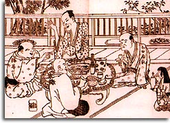 1.箕作阮甫(みずくりげんぽ)の長崎紀行ロシヤ正使の特別随員として長崎往来、蘭学者 箕作阮甫の手記「西征紀行」。▲ポルトガル色絵鉢 先年、岡山県津山市の木村岩治先生より同地出身の有名な蘭学者 箕作阮甫(1799~1862)が江戸より長崎往来の手記の原本「西征紀行」を編集発刊去れ其の一冊を御恵送いただいた。 阮甫先生が長崎に下向してきたのは嘉永6年(1853)の暮れであった。それは同年の7月ロシヤのプチャーチン一行がアメリカのペリーの浦賀入港に続いて、長崎の港にロシヤとの開港をせまり、且つ樺太の領土問題について交渉をする目的で来航してきたのである。 幕府はこのロシヤ使節に対し10月勘定奉行で外国通の川路聖莫を正使とし、阮甫を特別随員として任命し長崎下向を命じたのである。 阮甫は同年の10月30日、助手として門下生の中より後に兵学者として名をあらわし明治政府時代には陸軍幼年学校長となった武田斐三郎(あやさぶろう)他5人の従者を引き連れ、江戸鍛冶橋の自宅を朝七ツ時に出発している。朝七ツ時といえば、現在の午前8時頃である。 一行は中仙道を通り11月16日京都を過ぎ、夕方・高槻富田の宿(現在・高槻市富田)に泊まっている。かくて12月3日一行は小倉に到着、それより陸路長崎街道に入り12月8日夜七ツ時長崎の街に到着している。 其のようるは夜は長崎代官高木氏の中島の治にあった別邸に泊まっている。翌9日の日記には「雨のち晴れ、昨日来寒甚し。」それに続いて「我等主従7人、狭き室におし込められ、御用長持、駕篭、づづら、兩掛、葛羽篭に至るまで置く余地なければ別に一所を求む。」その願いにより一行は寺町三宝寺座敷とその控の間を宿舎として与えたれている。2.長崎の豚肉ブドー酒からスキ焼き、中華菓子まで阮甫が味わった長崎の食文化。 私はこの「日記」の中より「長崎食の文化」の関係を取りだし考えてみることにした。 12月11日夜食のとき阮甫は斐三郎と共に豚肉を賞味し「さすが長崎の豚肉は江戸の豚肉とは大いに異なり美味にして柔らかなり」と言っている。そしてその理由は「中国、オランダ人のために豚を土地の人達が長年飼育に勤めたからであろう」と記している。 13日再び阮甫は斐三郎と共に豚肉を賞味している。今回は長崎には豚肉を使った「ソボロ烹」という料理があると聞いているので其の料理を頂きたいと言っている。そして其の料理法を阮甫は次のように記している。 先ず鍋に豚の脂をとかし、次に豚肉をその油でいためる。それに細長く刻んだ椎茸と長さ3.4寸ばかりの豆芽(もやし)を多く入れ、方形に薄切りにしたるコンニャク、唐人菜少しばかりを加え、薄醤油にて味つけしものにて、甚だ口に可なり。※ソボロ烹は長崎地方の方言で中国料理の「繊羅蔔」を語源としていると古賀十二郎先生は長崎市史に述べておられる。 繊羅蔔とは千切り大根のことであり、それを油炒めした料理のことであろう。 12月19日には鮫屋宇八が贈った「シッポク料理を斐三郎と共に食べロシヤ人の事を談ず」と日記にはある。 然し、シッポク料理についてはその感想を記していない。 12月2日は、肥前鍋島公より野鴨一羽を料理して供さる。黄昏より酒飲む。3.ロシヤ船に招かる▲スペイン花模様皿 12月7日朝。西役所に至り、それより川路公を始め長崎奉行の一行と共にロシヤ船バルラス号に葵の紋をつけた御用船に乗ってでかけている。船上ではいろいろの事があり、其の後船室での小宴があった。その模様は次のように記してある。 座にもどれば侍者酒肴を勧む、一々記するにゆとしなし。シャンパン(酒)、リンスウエイン酒(白ブドー酒にして酸味あり)等は其の美なるものなり。・・・・・酒おわりて各々に一画幅を贈らる。余には洋画の山水人物図を贈らる。 12月27日、先日来のロシヤ使節一行の対応ですっかり疲れたので、ここらで一杯やろうという事で三宝寺の近くに「一力」という料亭があったので其処にでかけることにした。 「一力」に至ると酒も用意できぬうちから次々と来客があった。福岡藩黒田公の使者として永井太郎が藩公よりの贈物として博多帯2筋を持参された。次に長州藩三田尻の洋学者で余の門に学んだ田原玄周が訪ねてきた。相共に対酌す。舞ひめ1人を召す。痛飲して帰る。 12月29日、年の暮れであり、且つ年あけと共に我等一行は江戸に引き上げるというので名残の一席を思い立ち先ず第一に松森天満宮にある有名な料亭吉田屋(現在の富貴楼)に至る。年の瀬で満席であるという。次に、これも長崎第一の有名な筑後町聖福寺門前の料亭迎陽亭に至るも此処も同様に客に謝す。岐路一酒店にて一酌す。酒たけなわ、玄周・斐三郎ら余を無理に丸山に拉して行く。丸山にては花月楼に上る。 「文徴明の題字あり、宅地は広々としており屋宇華壮。山に依り水に面す。然し妓女全て田舎むすめにて、江戸より来れる人の目にはあやしく見ゆ」と記している。 嘉永7年1月1日、雨、雨を冒して奉行所に至り川路公ならびに長崎奉